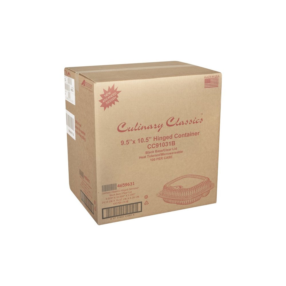 Contenedores de 3 compartimientos de plástico apto para microondas, de 9.5 x 10.5 pulgadas, negros, con bisagras, ventilados, polipropileno, 50 Cdd Bol, 2/Caj