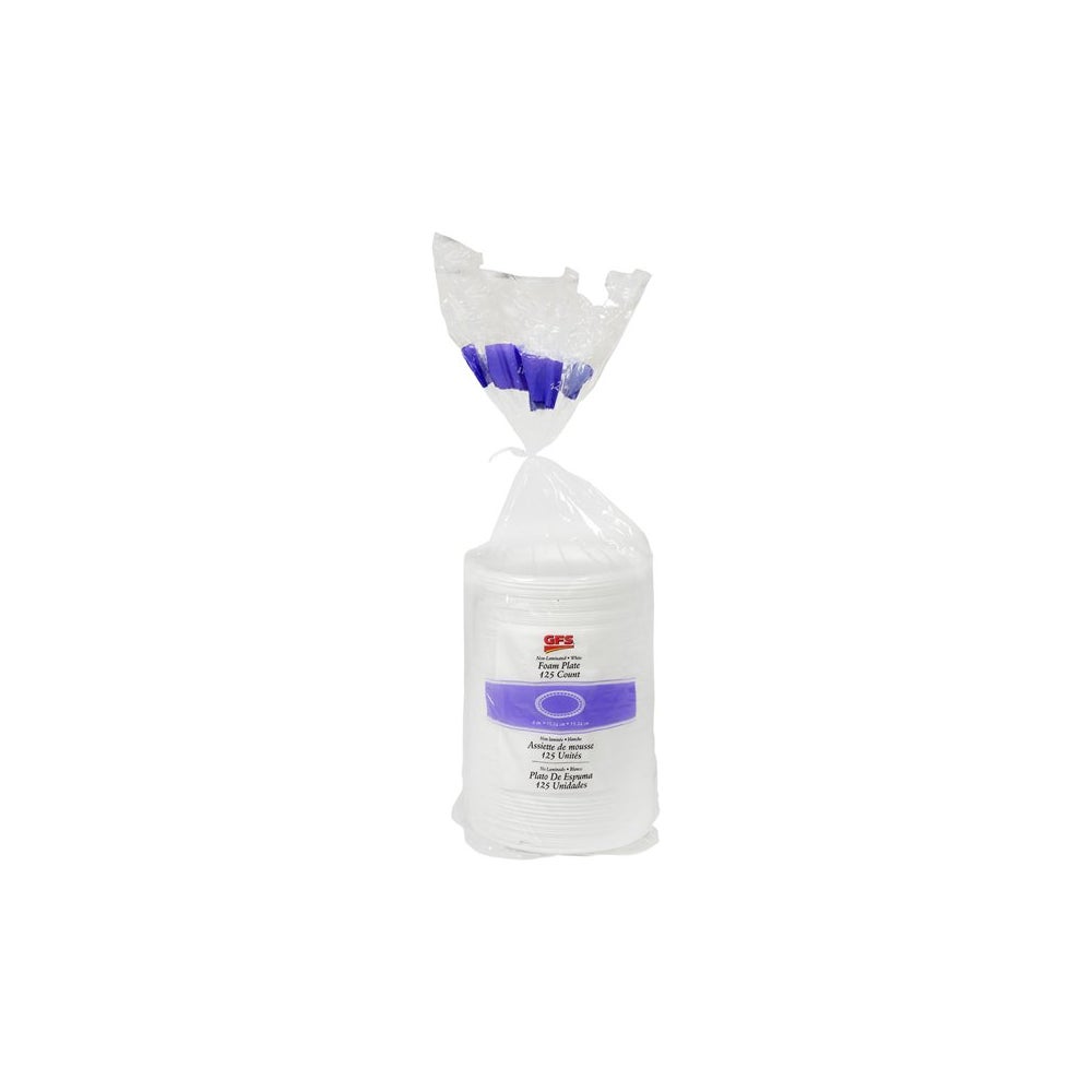 Platos de espuma no laminada de 6 pulgadas, blancos, poliestireno, 125 Cdd Paq, 8/Caj