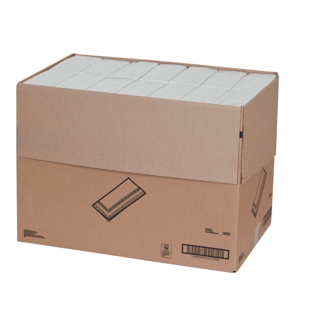 Servilletas de mesa con gofrado de 2 capas, blancas, dobladas 1/8, 15 x 17 pulg., Envasadas en poli, 100 Cdd Paq, 28/Caj