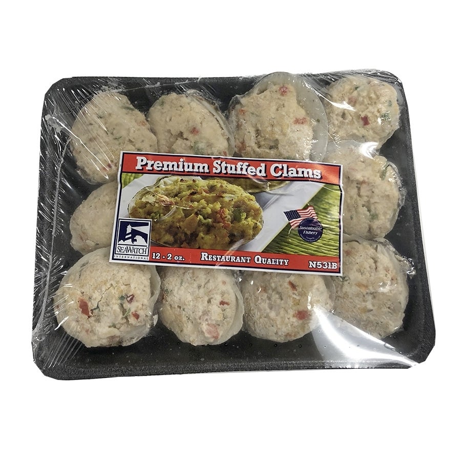 Almejas rellenas, silvestres, 2 onzas de relleno, concha natural, Consejo de Administración Marina, crudas, congeladas, 12 Cdd Ban, 3/Caj