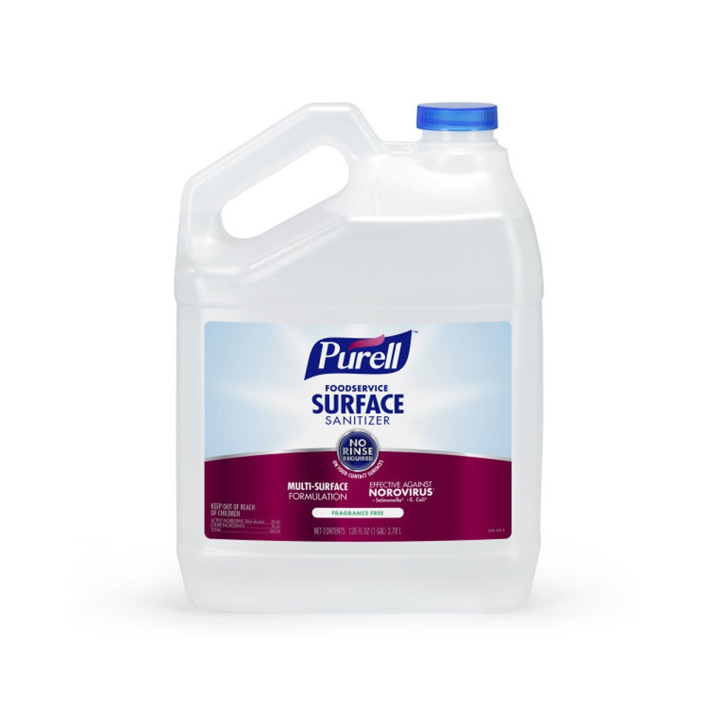 Este repuesto de desinfectante de superficies contiene un limpiador y desinfectante de superficies para contacto con alimentos que no necesita enjuague.