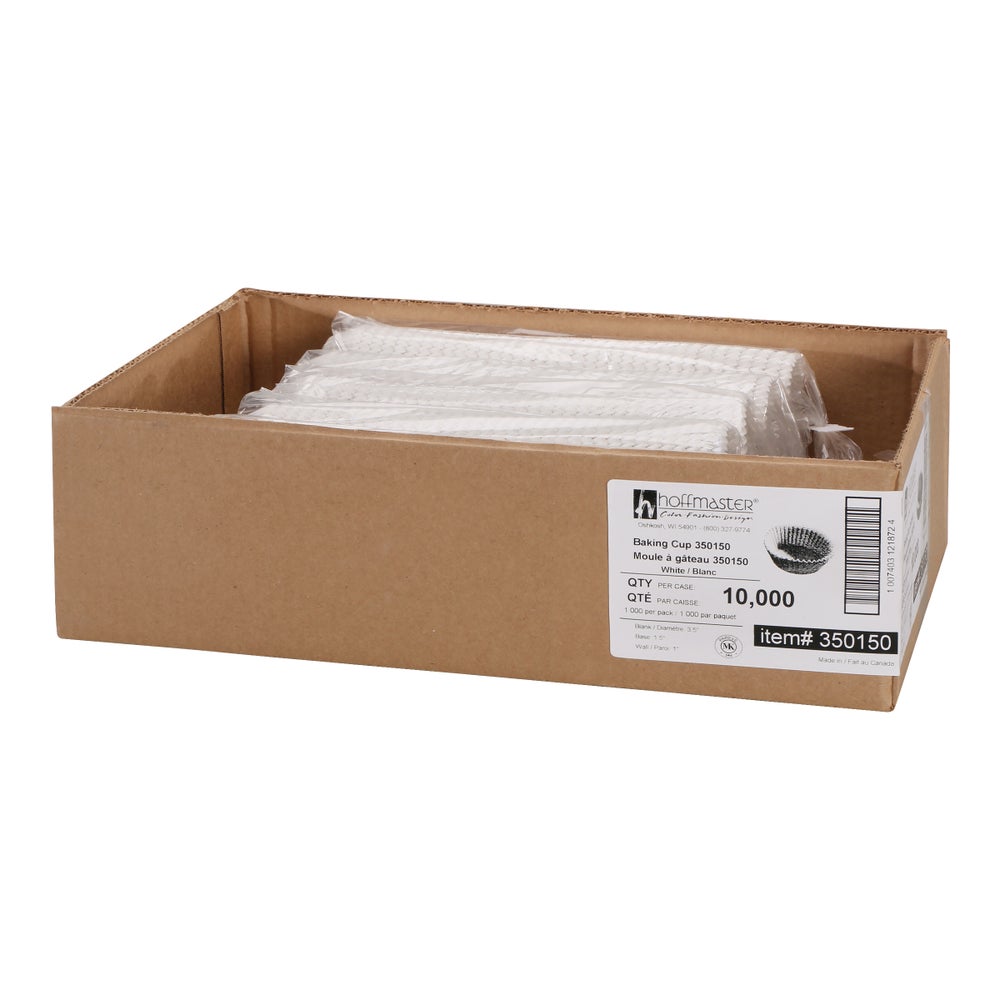 Molde para hornear de papel de 3.5 pulgadas, blanco, estriado, para cupcakes, postres y aperitivos, 3.5 pulgadas lineales, 1000 Cdd Paq, 10/Caj