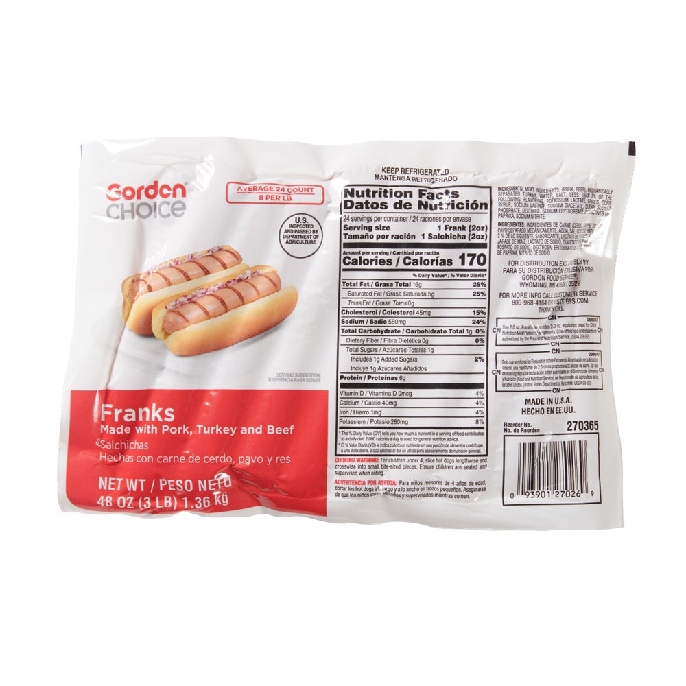 Salchichas de carne de res/cerdo/pavo, 6 pulgadas, 8 por libra, frescas, 3 Libr Paq, 12/Caj