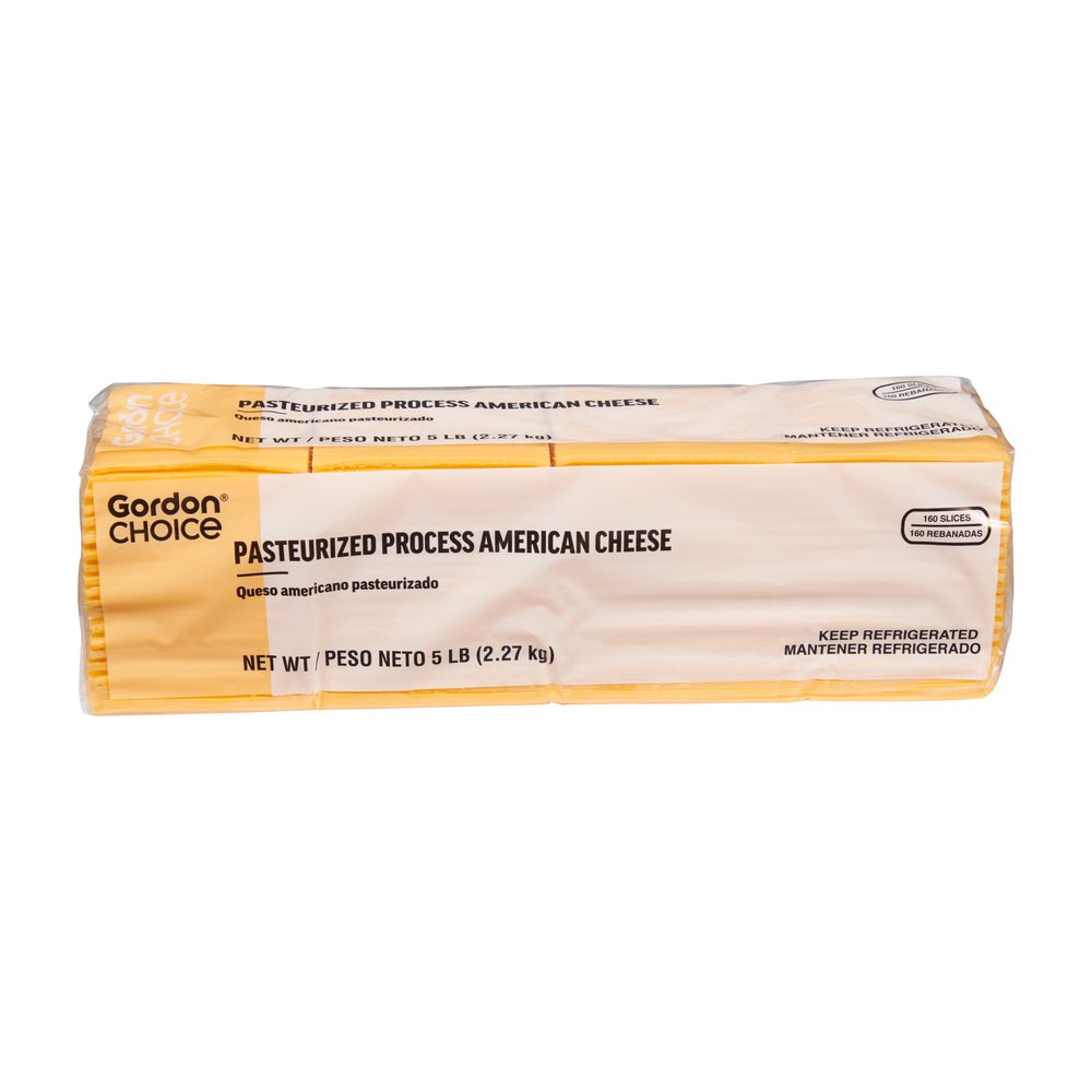 Queso americano amarillo pasteurizado procesado, rebanado, 160 unidades, 0.5 onzas, 5 Libr Bar, 4/Caj