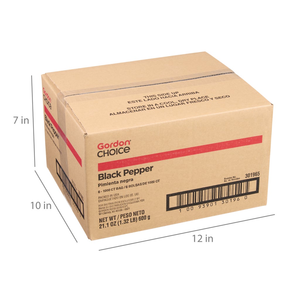 • La pimienta negra se envasa en un empaque económico de una sola porción. Excelente para llevar o para colocar en la mesa.