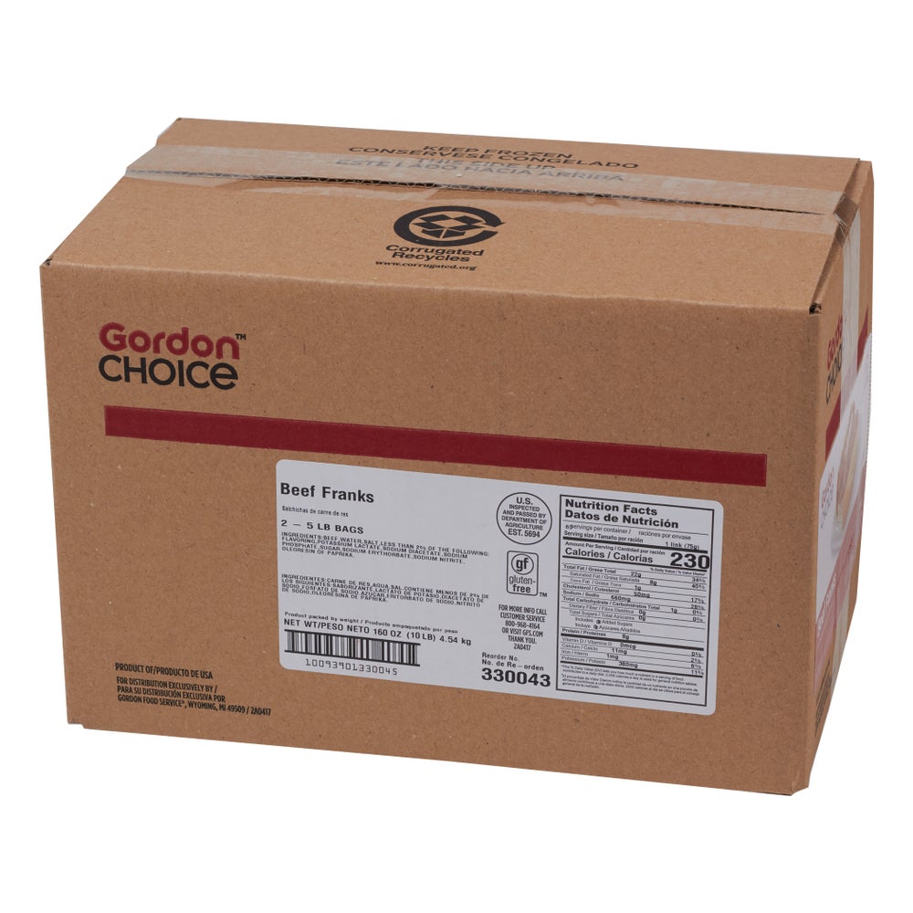 Salchichas de carne de vacuno, 6 pulgadas, 6 por libra, congeladas, 5 Libr Bol, 2/Caj