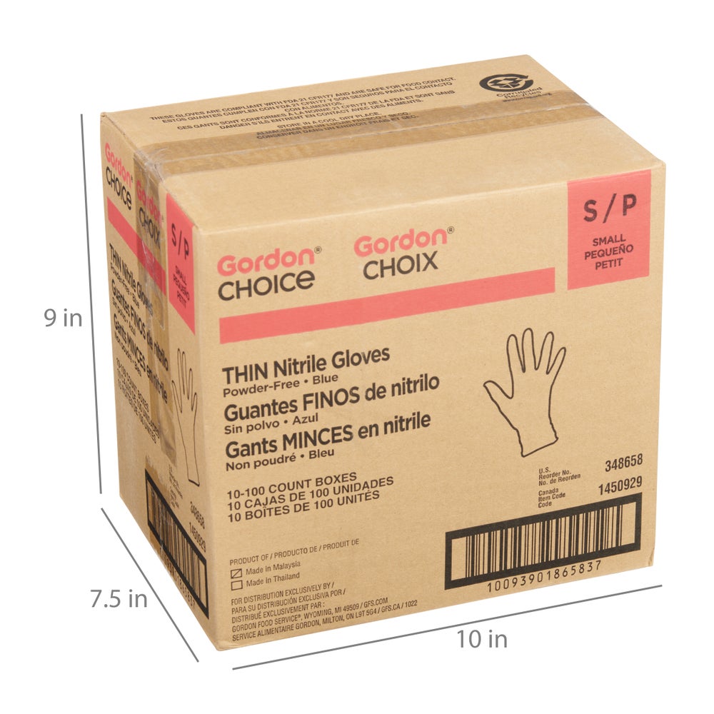 Guantes de nitrilo sin polvo, pequeños, azules, delgados, 100 Cda Cjs, 10/Caj