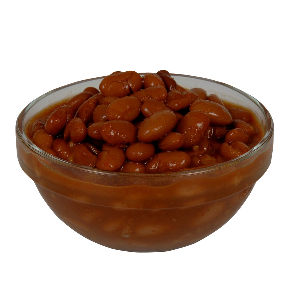 Empaquetados en una salsa de chili picante, los frijoles pintos cocidos a fuego lento se mezclan con chiles, especias, ajo y cebollas.