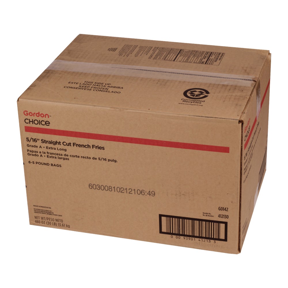 French Fries, Regular Cut, 5/16 Inch, Extra Long Fancy, Frozen, 5 Lb Bag, 6 Per Case