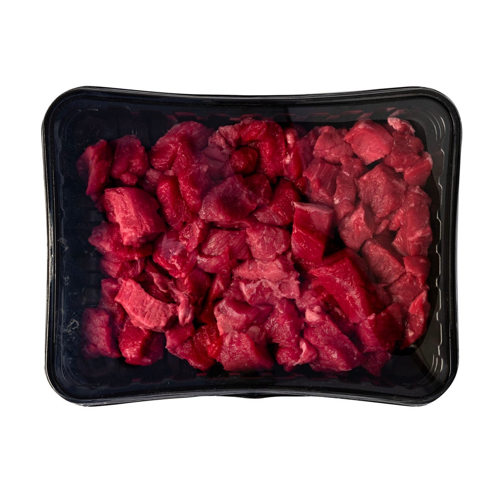 Carne guisada en cubos de res, fresca, 1 Pza Paq, 8/Caj