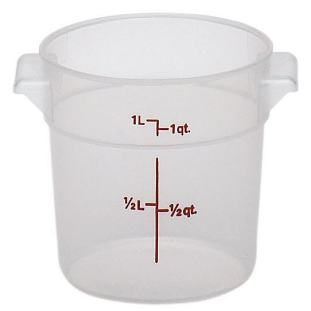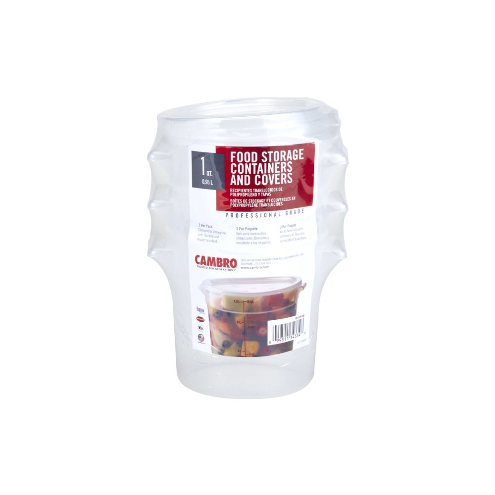Contenedor de alimentos redondo de 1 cuarto de galón, translúcido, polipropileno, con tapa, 1 Cda, 3/Paq