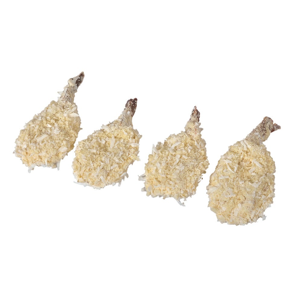 Camarones, rebozados con coco, con cola, 16-20 unidades por libra, crudos, congelados, 2.5 Libr Cjs, 4/Caj