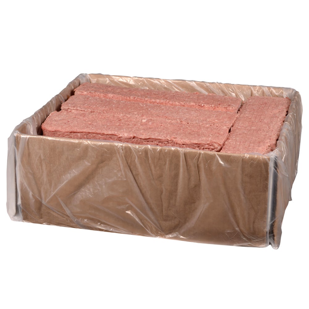 Carne molida, 75 % magra, 1 lb, losas congeladas envasadas a granel, 1 Libr Paq, 25/Caj