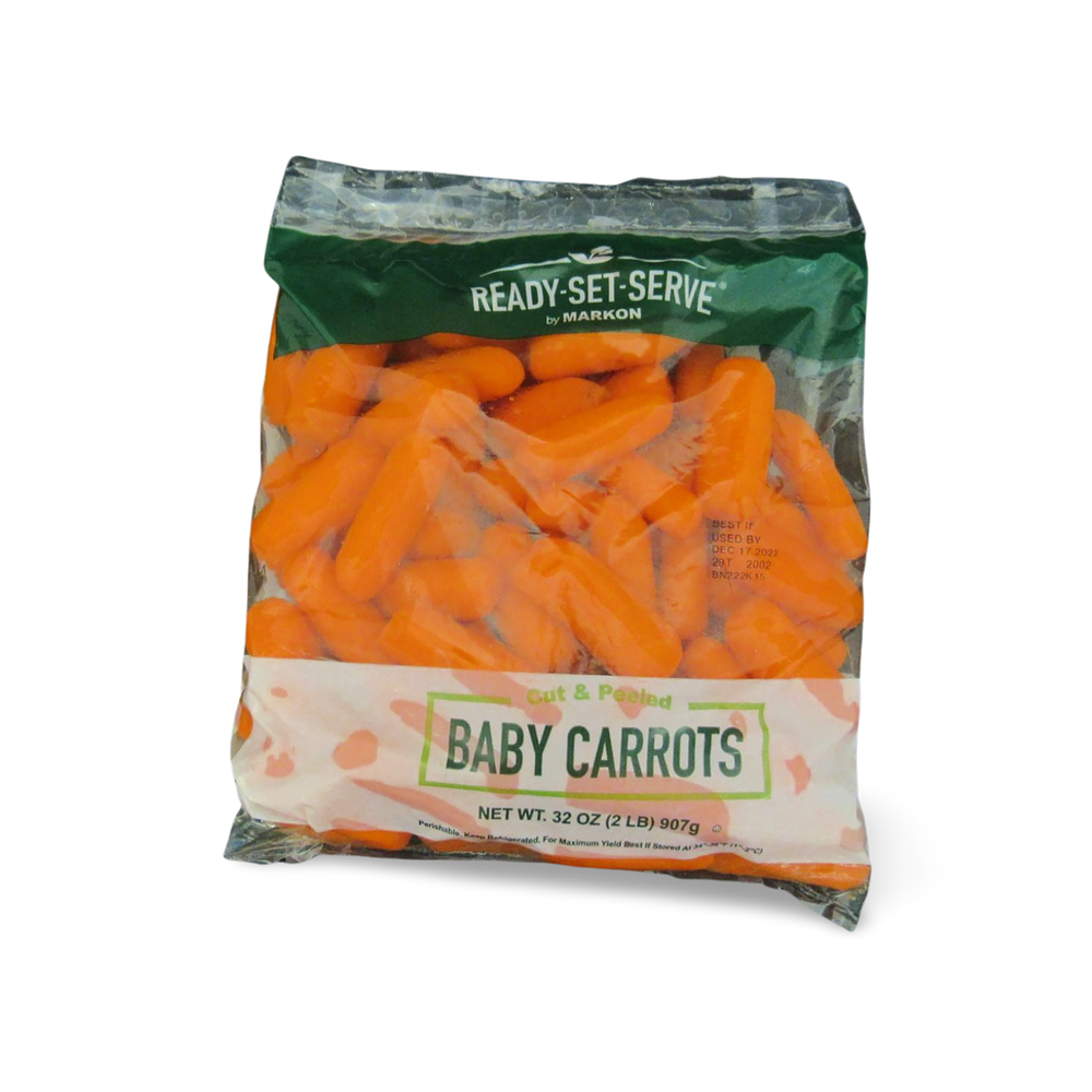 Zanahorias enteras para bebé limpias, resellables, recién cortadas, 2 Libr Bol, 12/Caj
