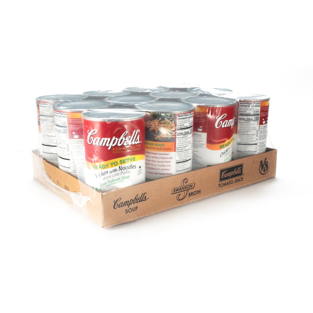 Sopa de fideos con pollo baja en sodio, lista para servir, enlatada, lata de 5 latas de tamaño