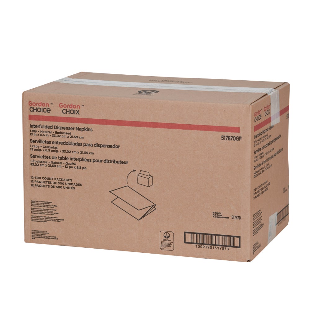 Servilletas dispensadoras entreplegadas con relieve de 1 capa, naturales, 8.5 x 13 pulgadas
