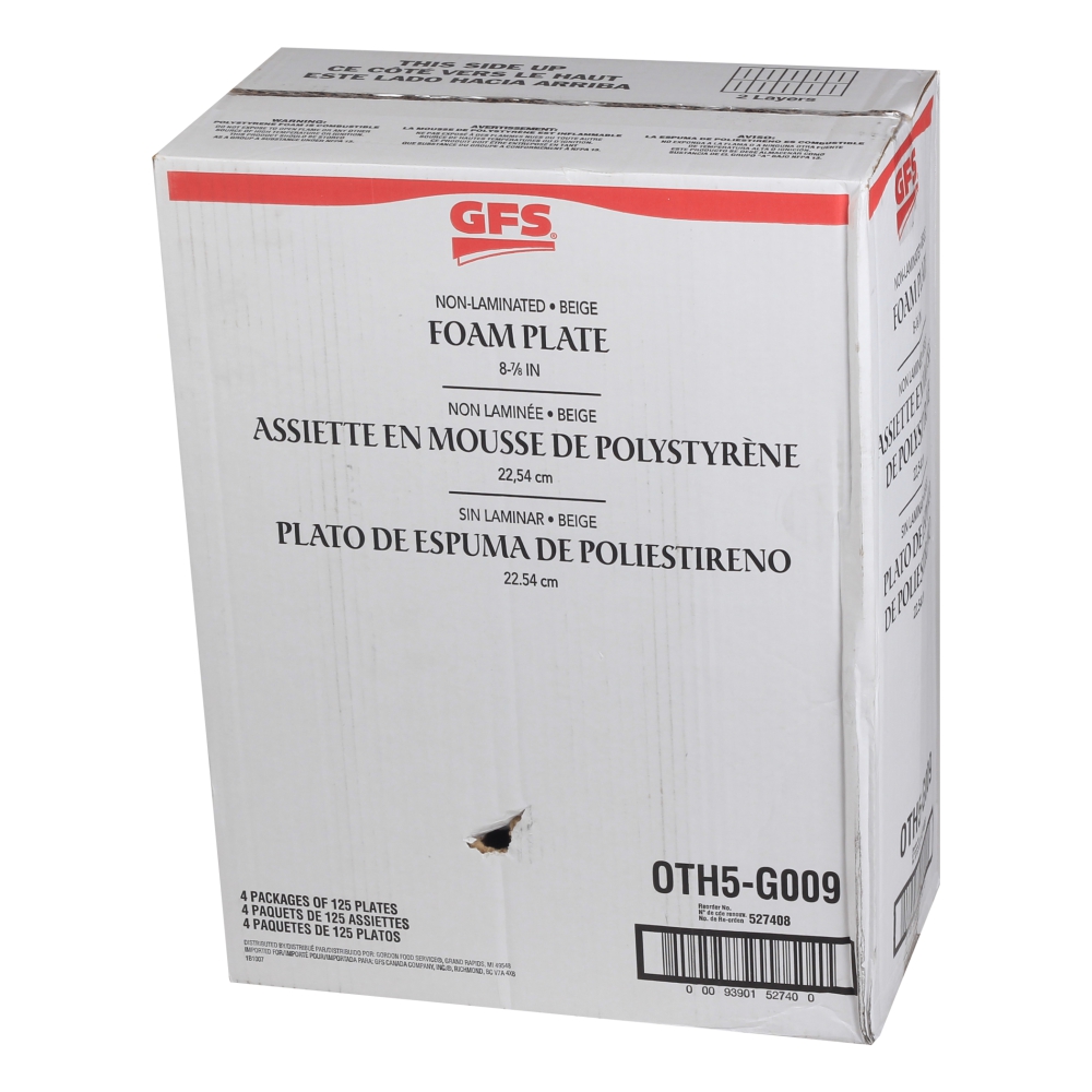 Plates, 9 Inch, Foam, Almond, Polystyrene, 125 Ct Package, 4 Per Case