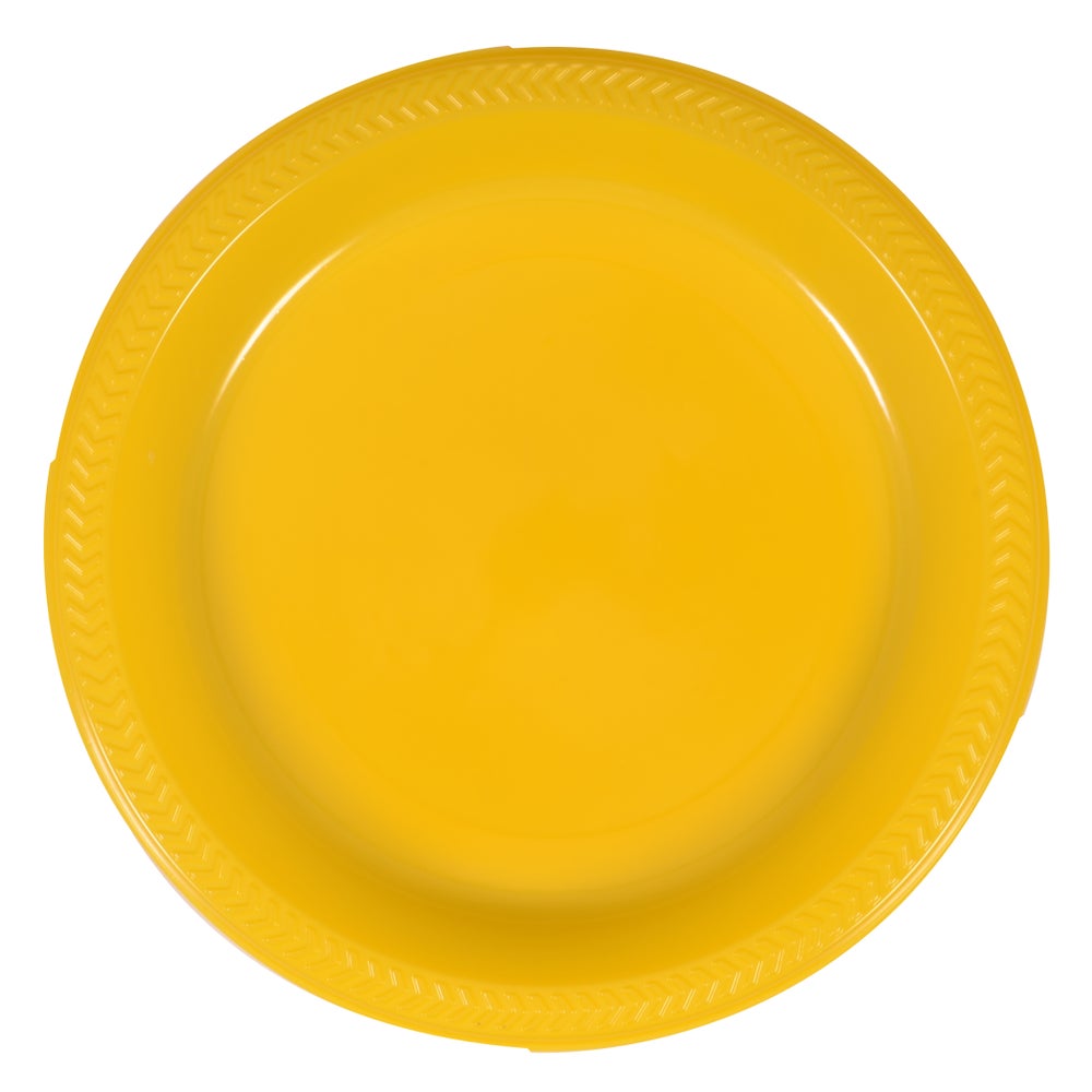 Platos de plástico de 10,25 pulgadas, amarillo, poliestireno