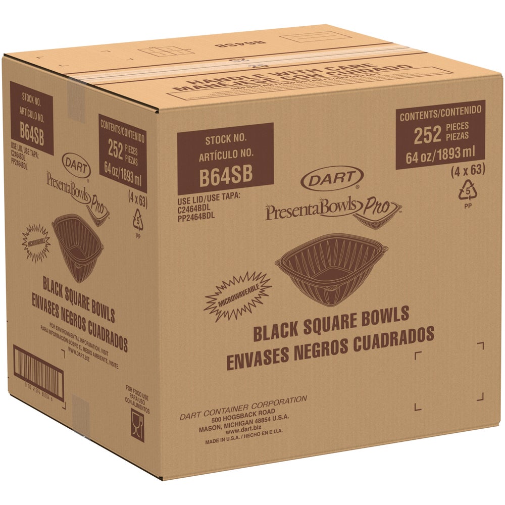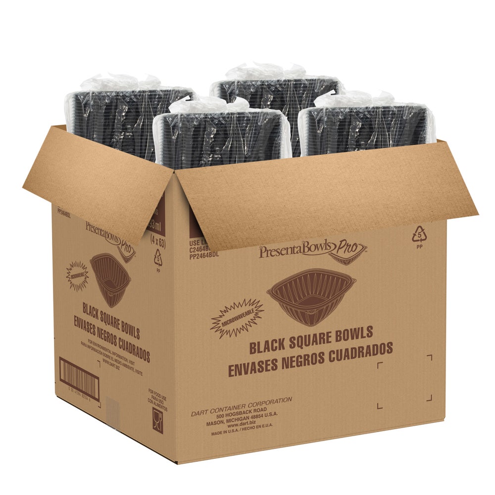 Cuencos de plástico de 64 onzas, negros, cuadrados, paquete de 63, 63 Cdd Paq, 4/Caj