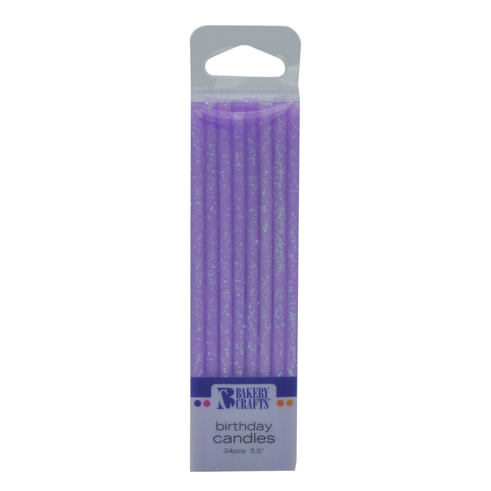 Velas finas con brillantina, moradas, 1 Cda, 12/Caj