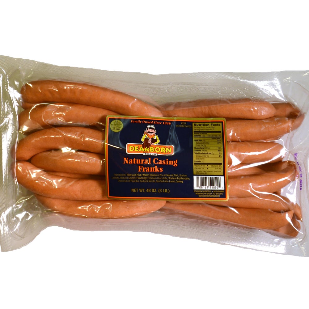 These franks have the savory crunch of natural casing filled with select cuts of beef and pork and natural spices.