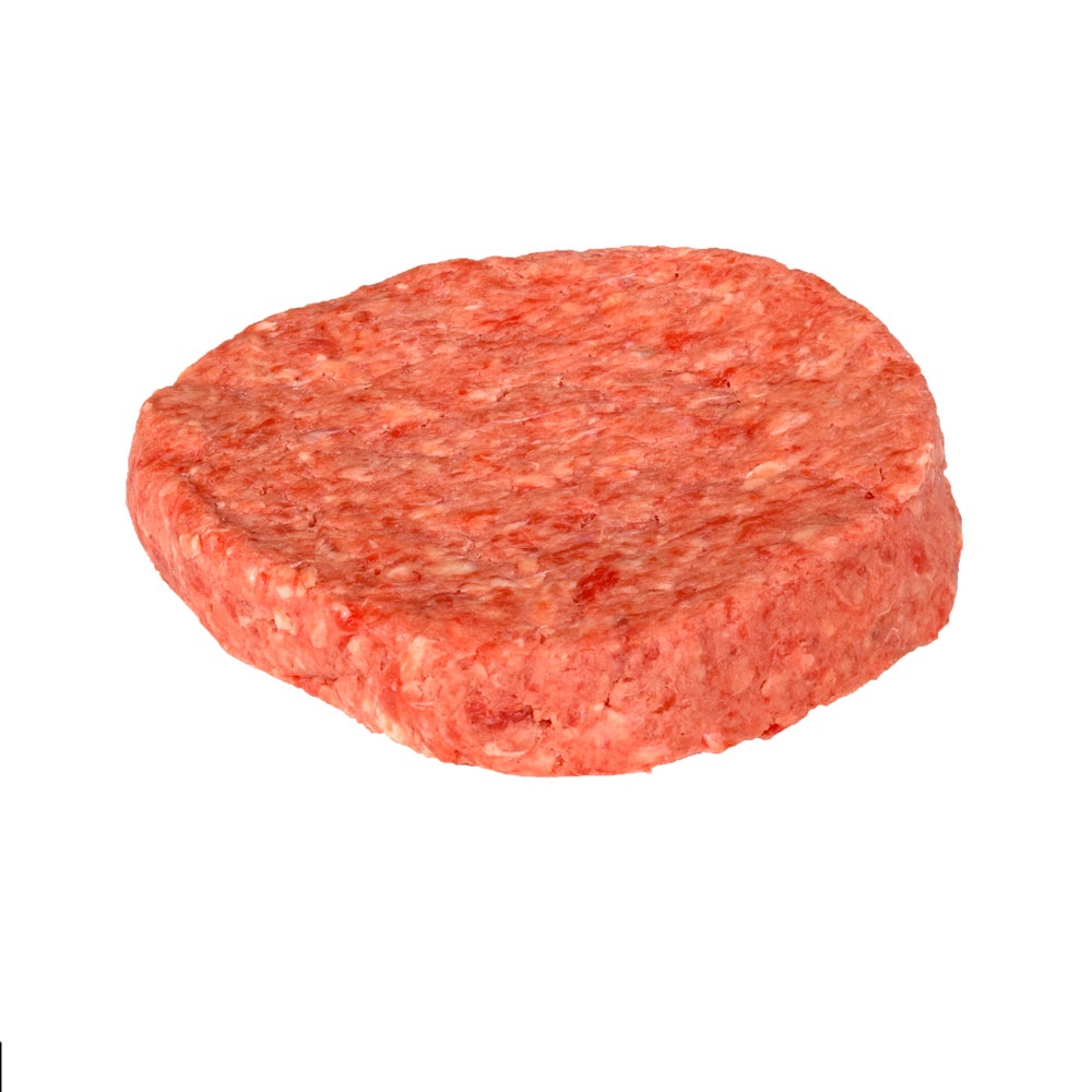 Estas hamburguesas de carne de res de mezcla personalizada para bistec se elaboran cuidadosamente para obtener consistencia a partir de cortes de paleta, pecho y costilla, y se mezclan para lograr un punto de magrez de 77%.