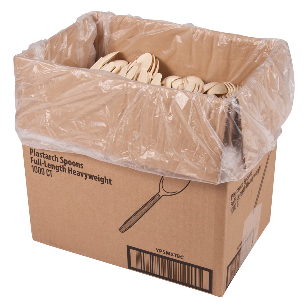 Cucharas de plástico pesadas, almendra, con mangos completos, material de almidón de plástico
