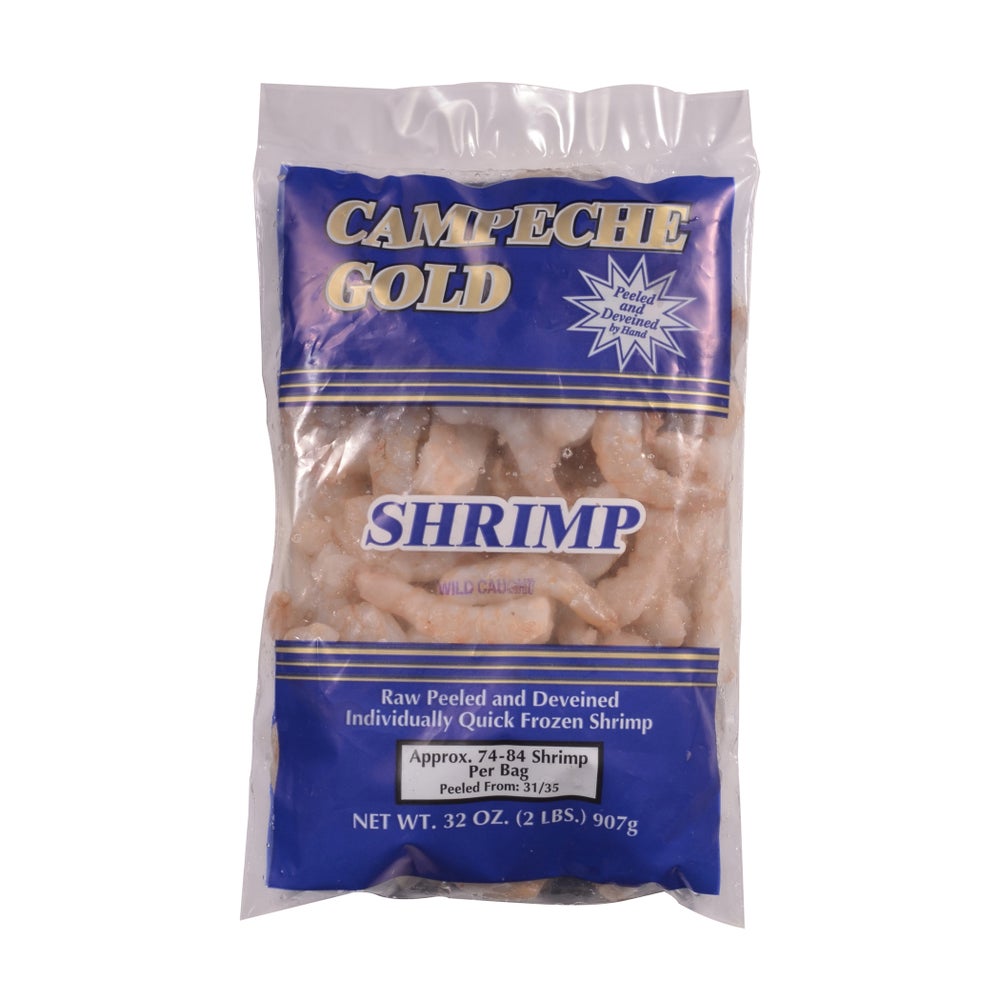 Camarones rosados y pardos de Campeche, pelados, sin venas y sin cola, 31-35 por libra, capturados en la naturaleza, sin químicos, crudos, IQF