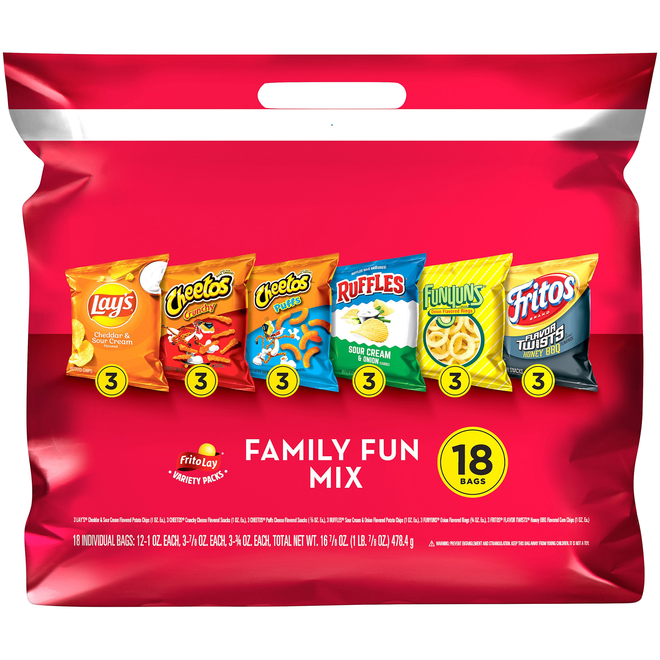 Chips, Multi-pack, Family Fun Mix, Lays, Cheetos, Ruffles, Funyuns, Fritos, 16.5 Oz Package