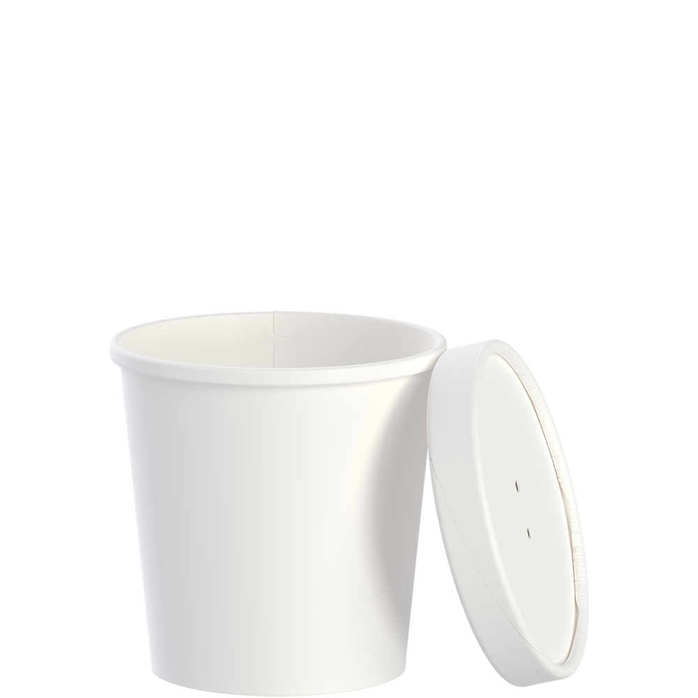 Containers, Soup, 16 Ounce, Coated Paper, White, with Lids, 25 Ct Bag, 10 Per Case