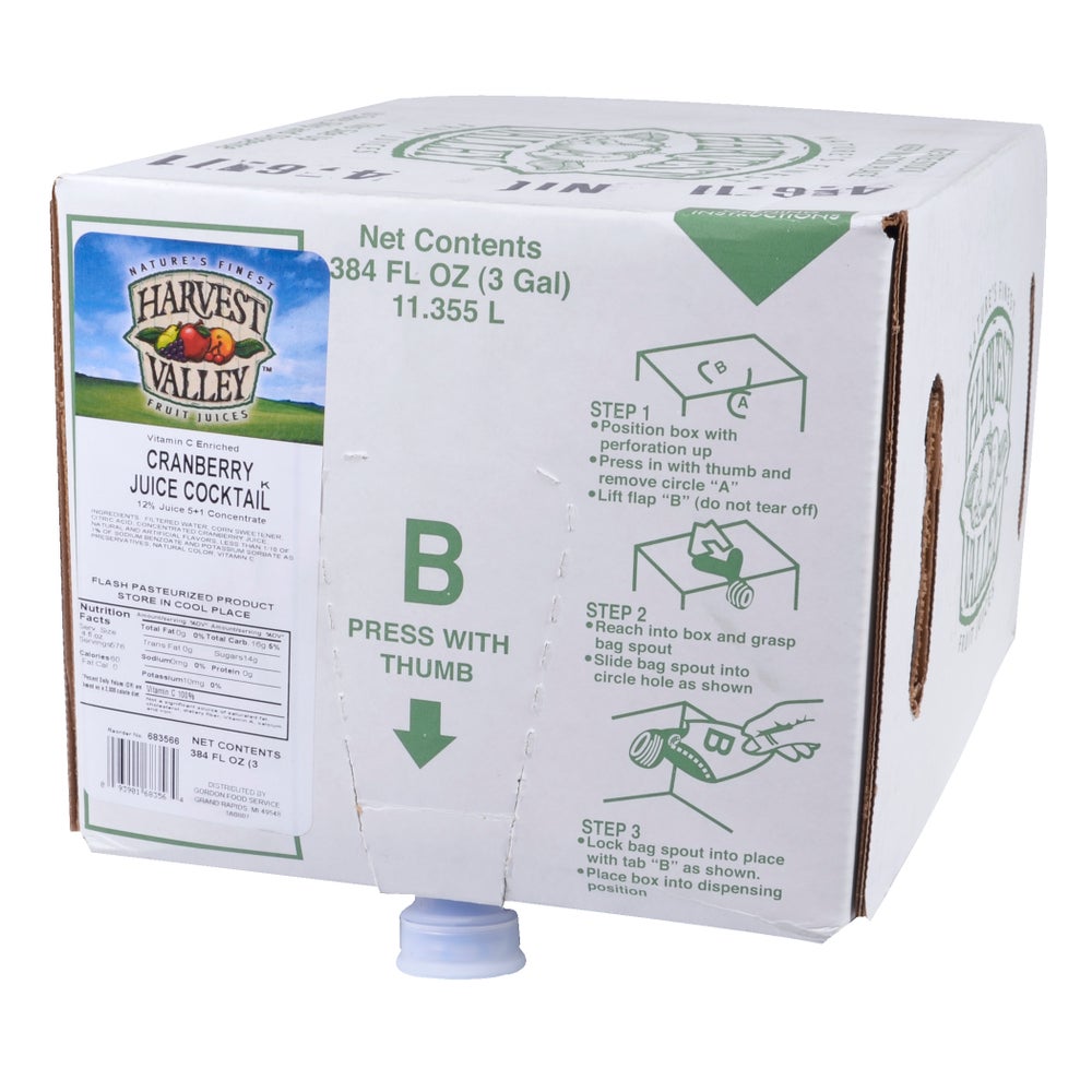 Jugo de cóctel de arándanos al 12 %, relación de 5 a 1, estable en almacenamiento, en caja con bolsa, 3 Gal Bol, 1/Cjs