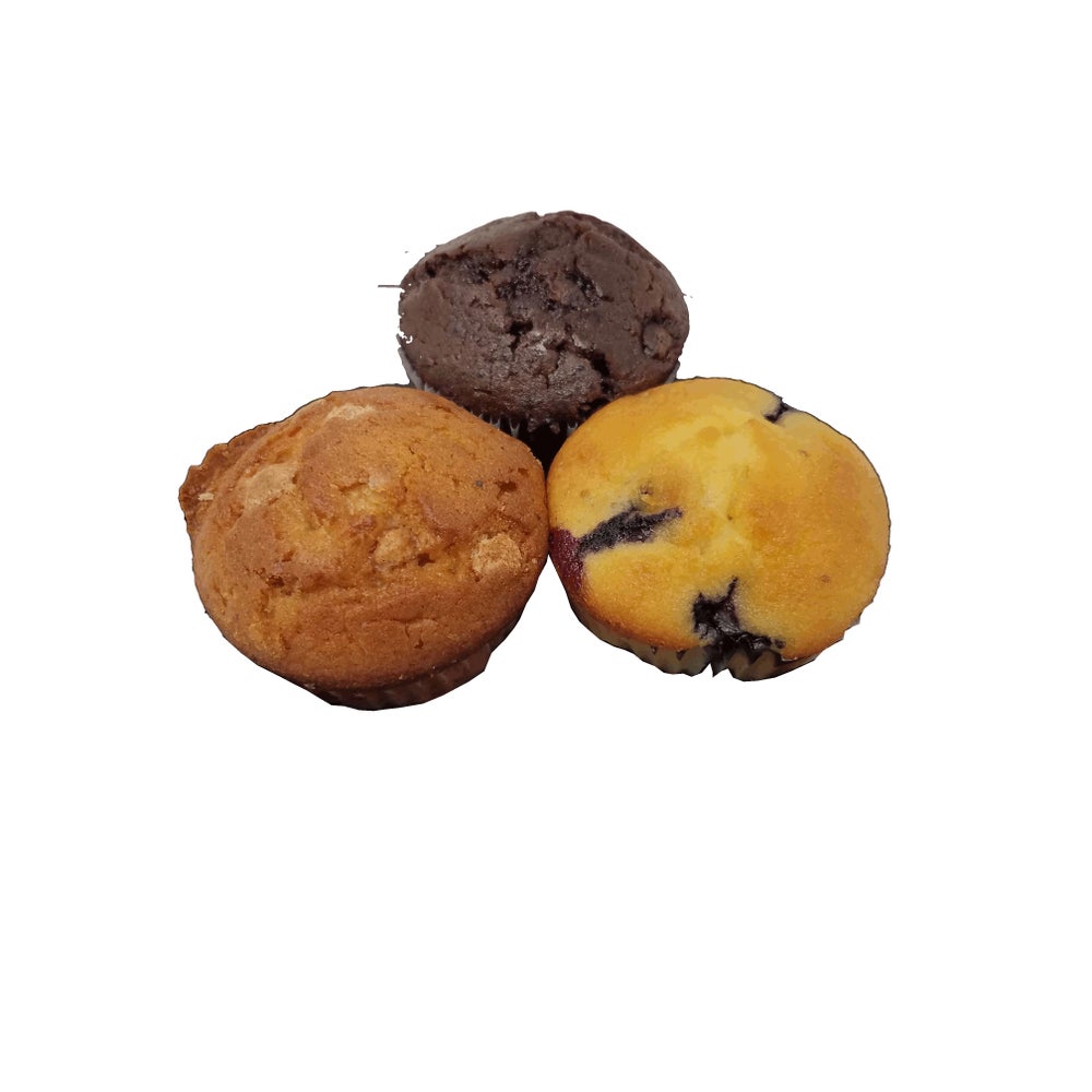Surtido de muffins, arándanos, doble chispas de chocolate, doble chispas de canela, envueltos individualmente, minis, congelados, 1.25 Onz Cda, 120/Caj