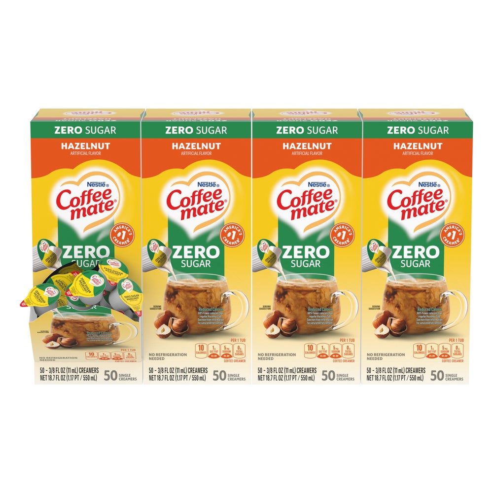 Crema líquida sin azúcar con sabor a avellana, tazas, se puede almacenar en estantes, porciones individuales, 50 Cdd Cjs, 4/Caj
