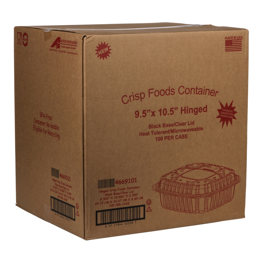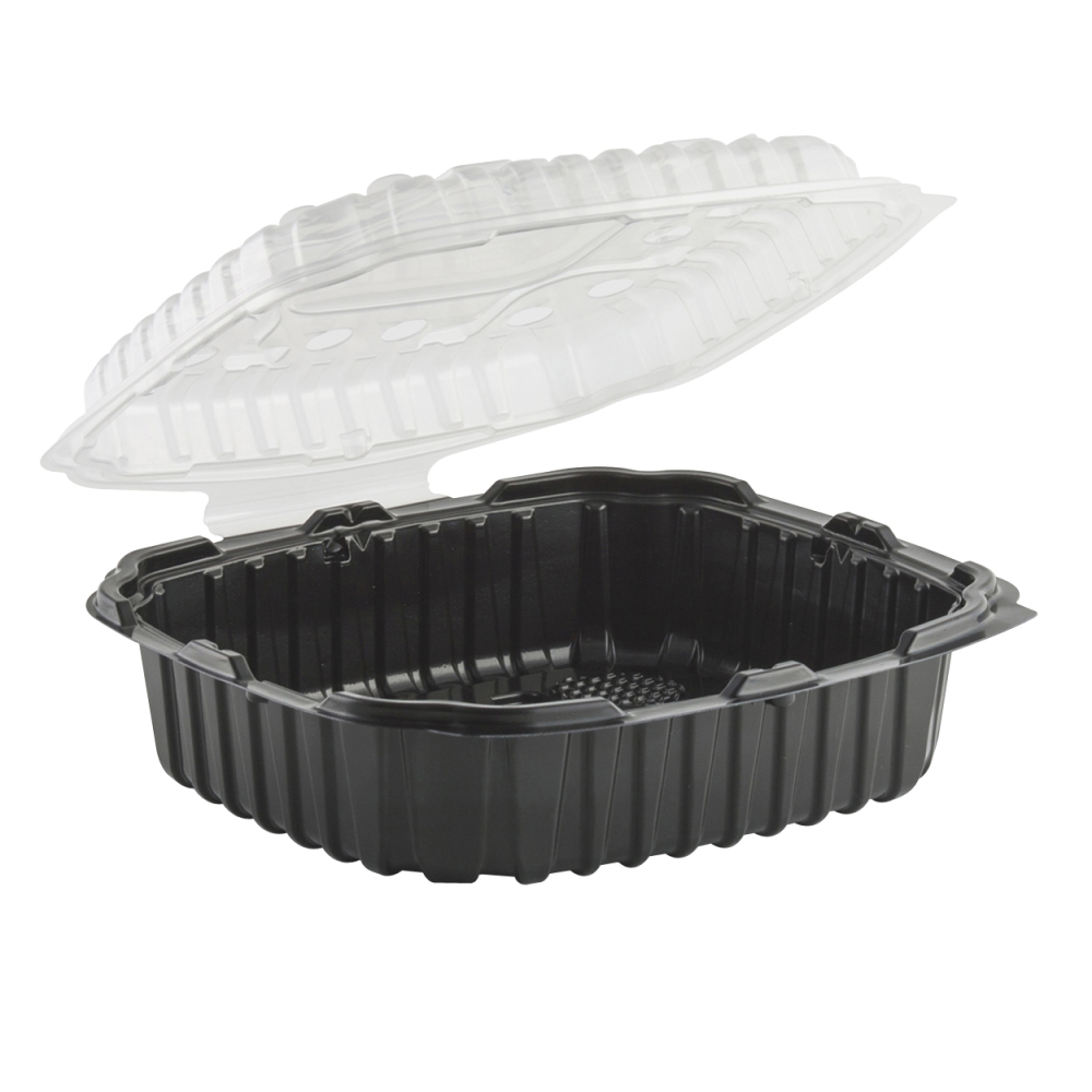 Containers, 1- Compartment, 10.5 x 9.5 x 3.5 Inch, Black, Hinged, Vented, Polypropylene, 100 Ct Package