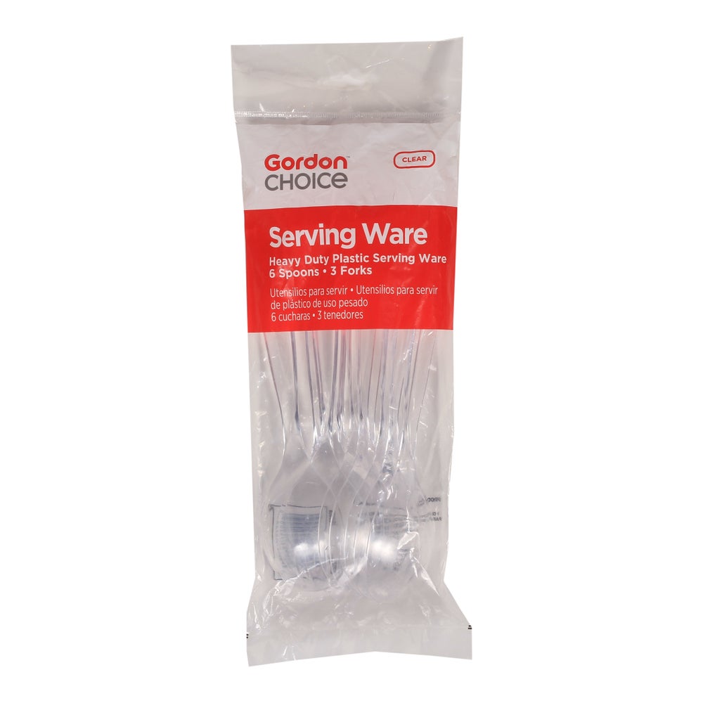 Cuchara y tenedor de servicio de plástico pesado de 9,5 pulgadas, transparente, polipropileno, 9 Cdd Bol, 12/Caj