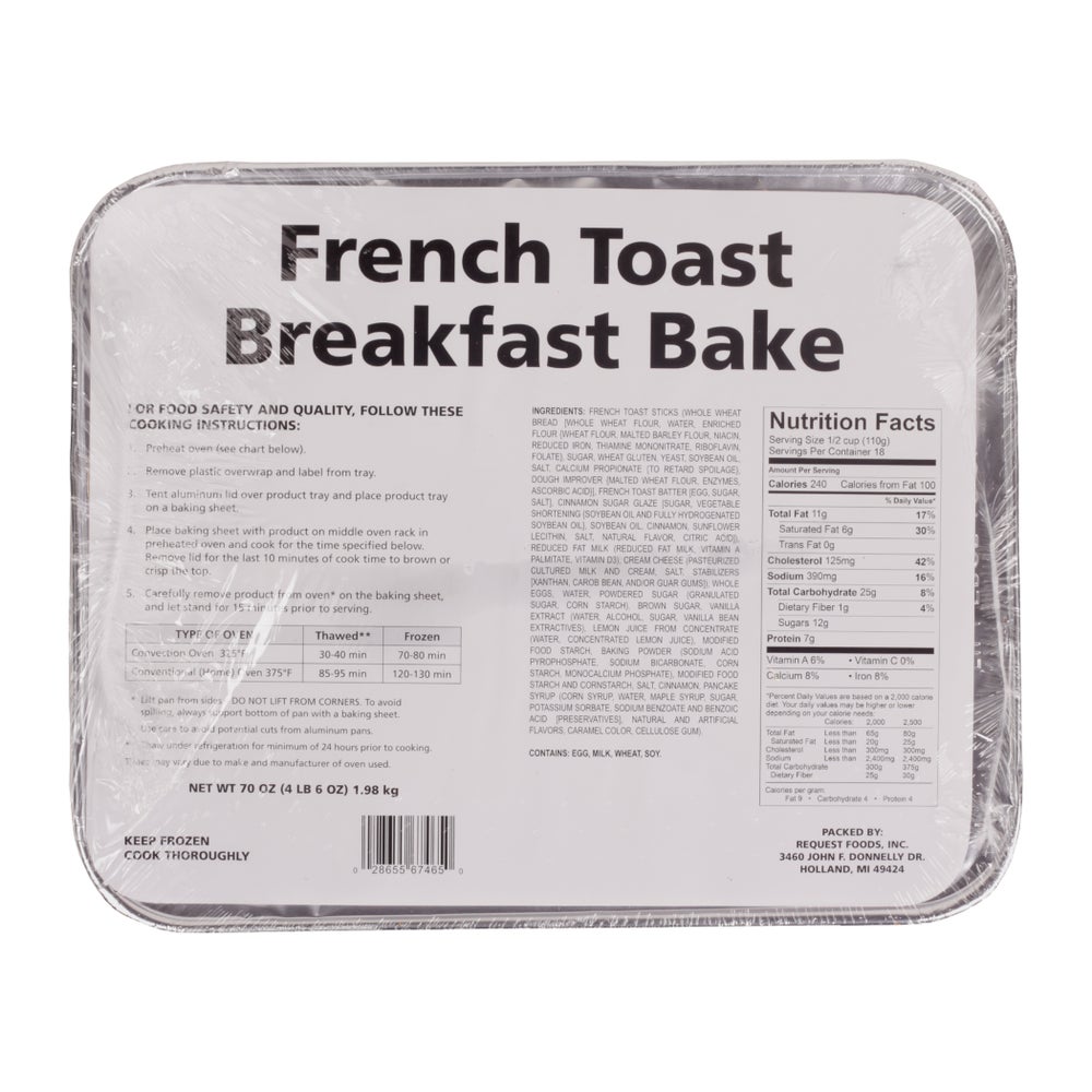 Plato principal, Tostada francesa al horno, Congelado, Bandeja de 70 oz