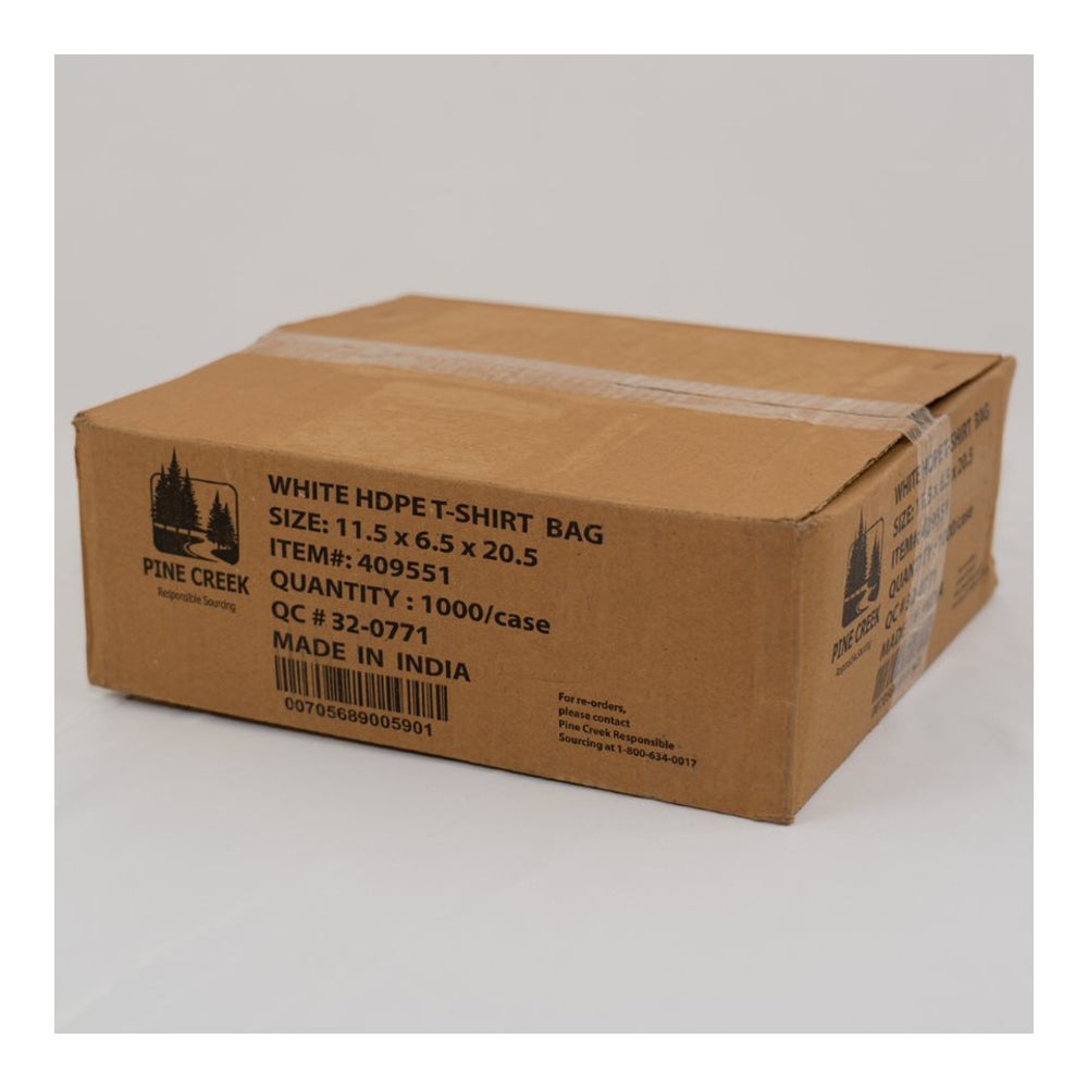 Bolsas de camiseta de plástico de 11.5 x 6.5 x 20.5 pulgadas, blanco