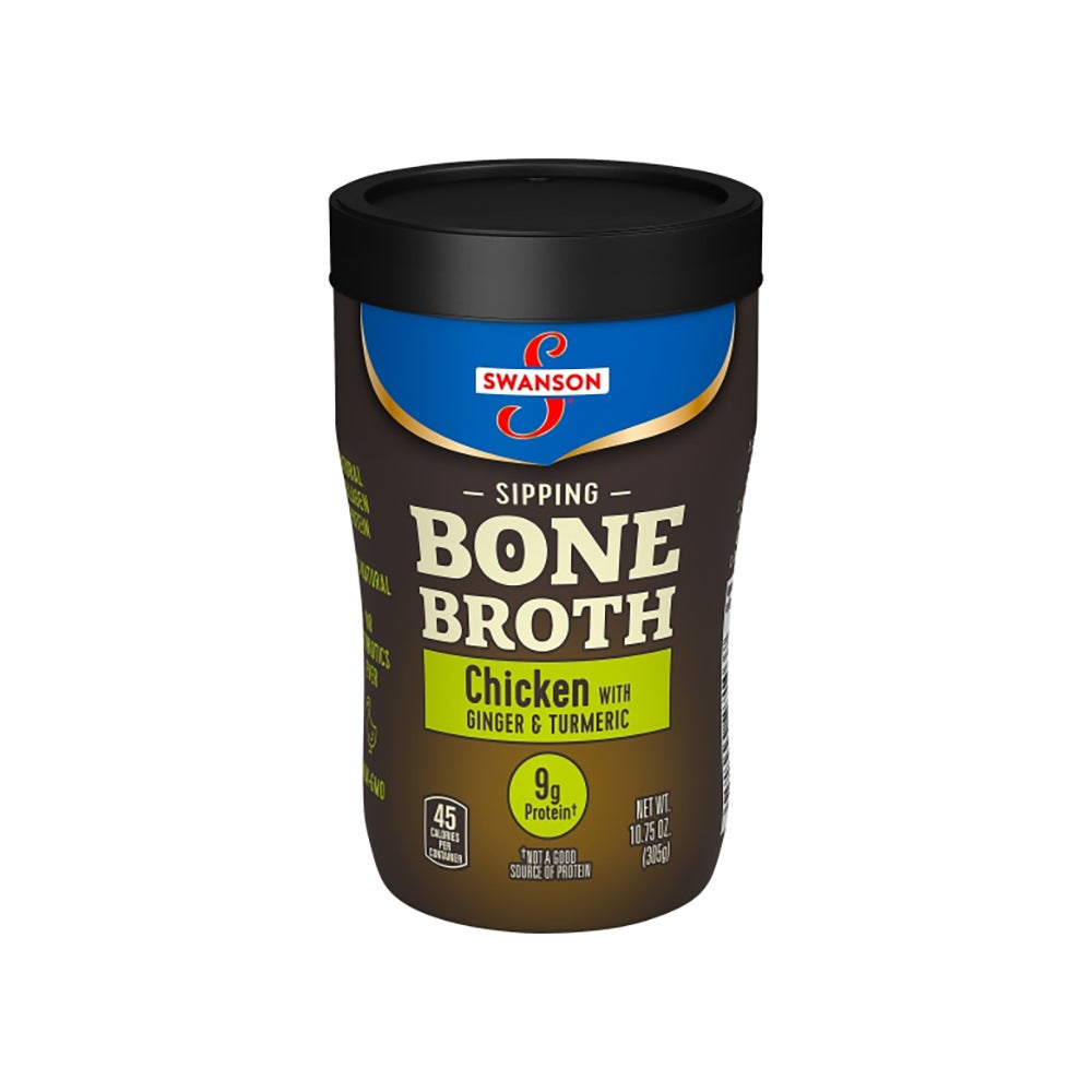 Caldo, hueso de pollo, con cúrcuma y jengibre, para beber a sorbos, 10.75 Fl Oz Botella