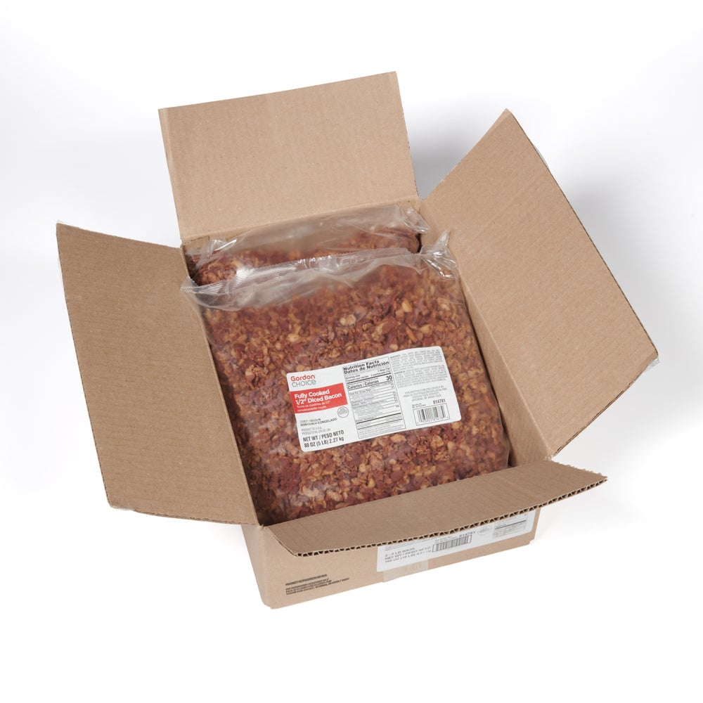 Tocino ahumado en madera de nogal americano en cubos, 1/2 pulgada, precocinado, congelado