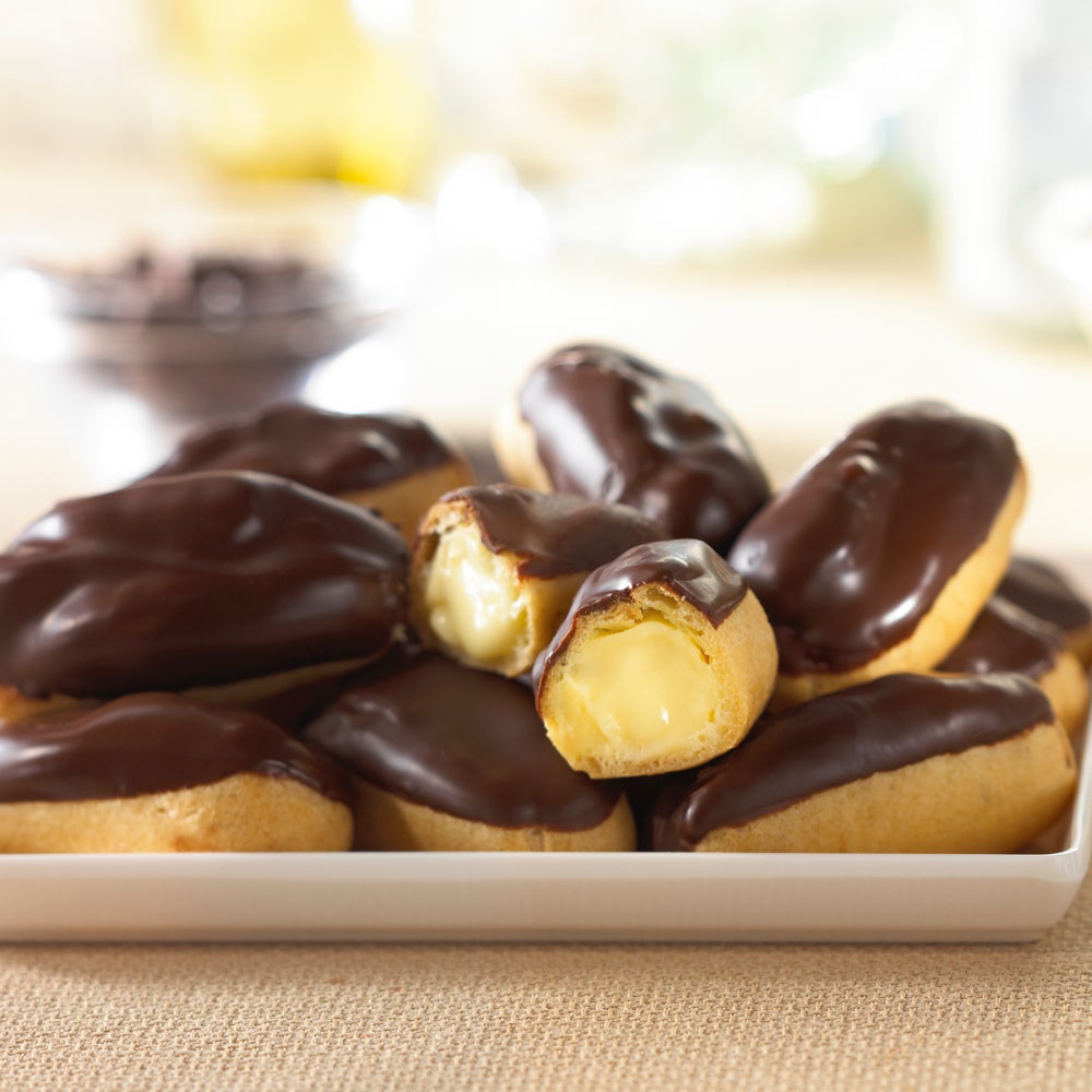 Mini éclairs cubiertos con chocolate, congelados, 24.6 Onz Cub, 6/Caj